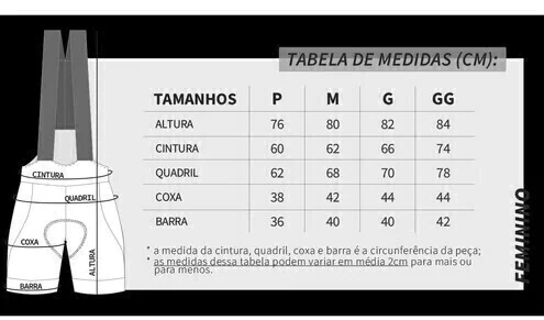 Bretelle de ciclismo com a parte superior sem costura, é constituída por elástico respirável na cor preta ou branca ultra leve e com memória. A peça não necessita ser passada, sua malha promove um ótimo efeito modelador do corpo, devido ao seu resultado compressivo e recortes.
